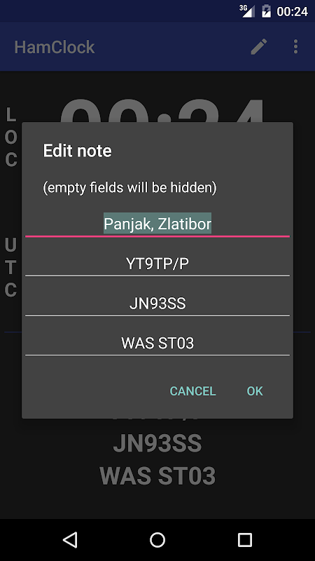 Ghi chú có thể được nhập vào tối đa bốn trường. Sử dụng nó để ghi lại tên vị trí, công cụ định vị QTH, tên gọi, chi tiết kích hoạt cho SOTA, WCA, WFF hoặc các hoạt động khác, thông tin sự kiện, v.v.