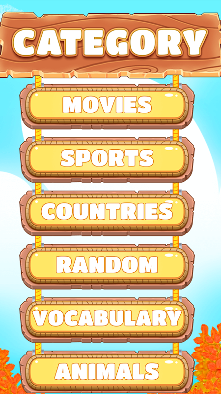 Challenge your word guessing skills with Hangman! Just select one of the categories or select 'Random' to get a word from any of the categories.