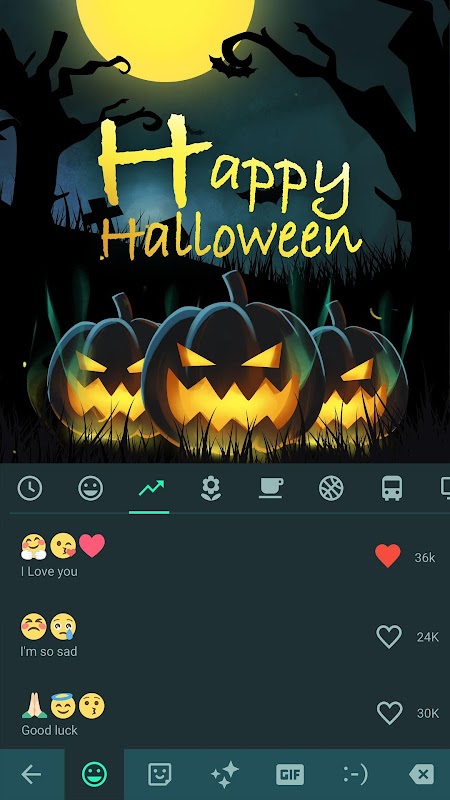 This Happy Halloween Keyboard Theme is a plugin app, please download the main app Facemoji Keyboard + GIFS for Happy Halloween Keyboard Theme to run.