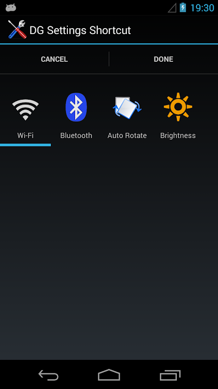 • Display Brightness with customizable levels (requires Jelly Bean 4.2 or higher)