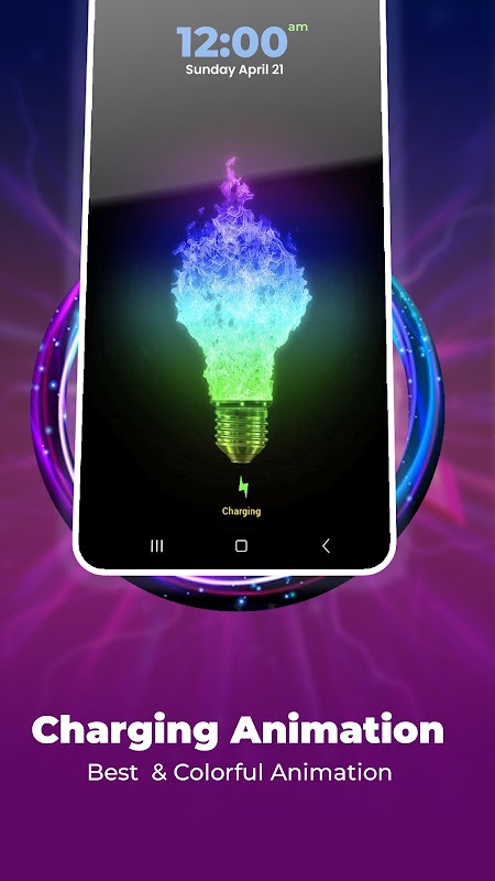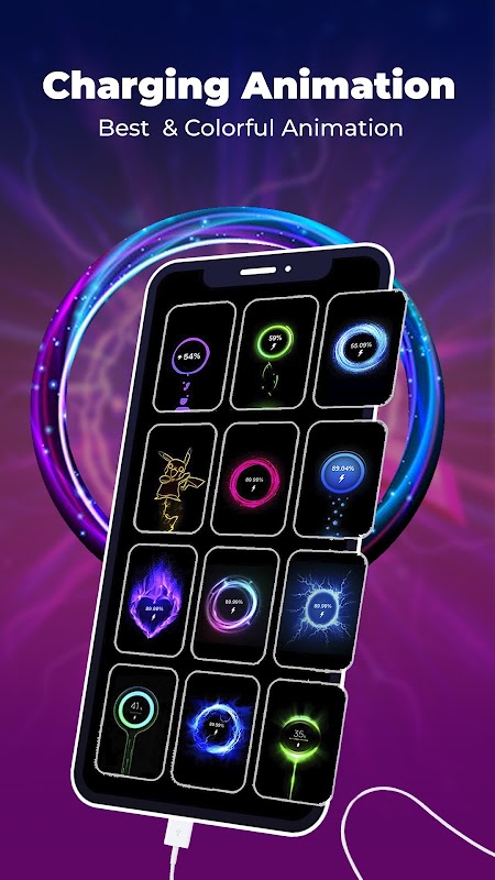 Làm cho màn hình điện thoại của bạn trông thông minh, phong cách và đẹp mắt bằng cách sử dụng các chủ đề hoạt hình sạc màu khác nhau và sạc pin trực tiếp. Hoạt ảnh bộ sạc này cho phép bạn chọn hoạt ảnh pin yêu thích của mình và hiển thị nó trên màn hình điện thoại để tăng thêm sự sang trọng. Bạn có thể chọn từ nhiều hình ảnh động khác nhau về pin và màu neon trong cài đặt ứng dụng. Khi bạn cắm bộ sạc, những hình ảnh động này sẽ làm cho màn hình của bạn trông thật tuyệt vời và đầy màu sắc.