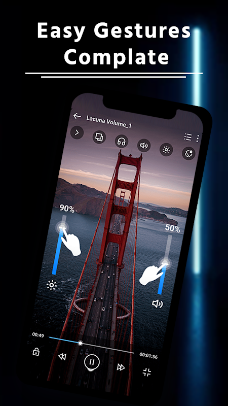 Video Player supports gestures to easily change the screen brightness and video volume when you are watching the video.