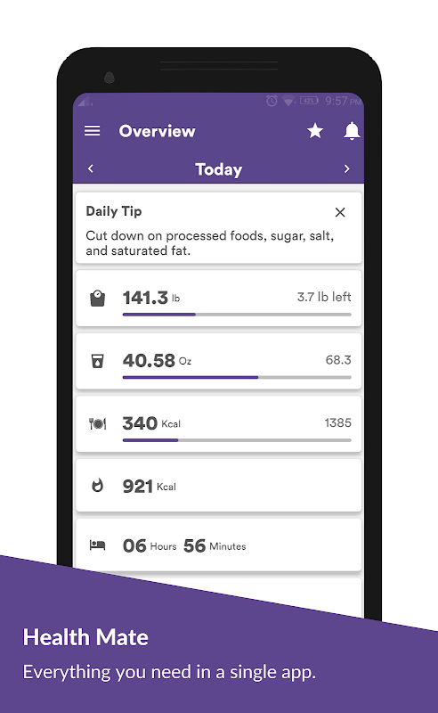Health Mate là một công cụ theo dõi sức khỏe tất cả trong một giúp bạn đạt được mục tiêu sức khỏe, giảm cân, lựa chọn thực phẩm tốt hơn và giữ cho bạn khỏe mạnh.