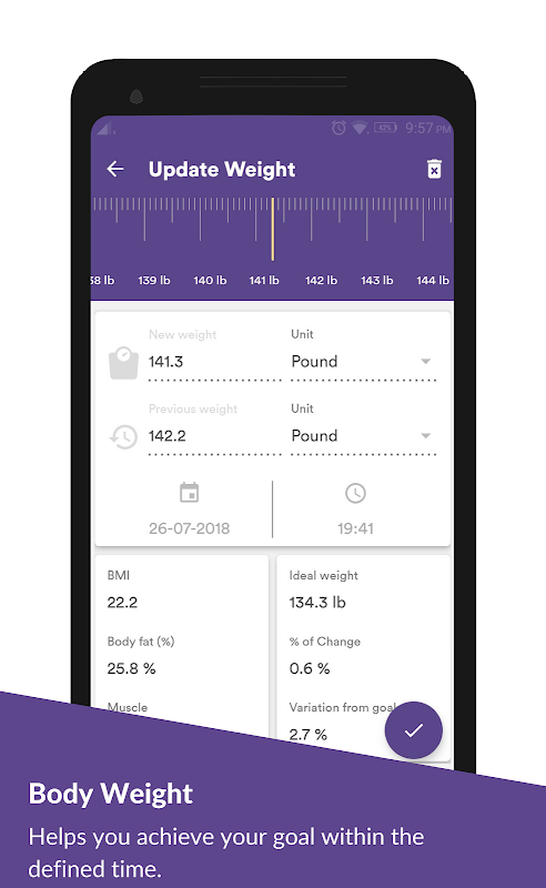 ✓ Theo dõi cân nặng - Theo dõi trọng lượng cơ thể của bạn để đạt được mục tiêu trong thời gian xác định.