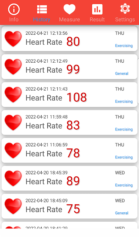 Theo dõi nhịp tim của bạn một cách dễ dàng với ứng dụng Theo dõi nhịp tim của chúng tôi. Chỉ cần sử dụng camera của điện thoại, bạn có thể đo nhịp tim một cách chính xác mọi lúc, mọi nơi. Cho dù bạn đang nghỉ ngơi, tập thể dục hay sau khi tập thể dục, ứng dụng này cung cấp các phép đo không giới hạn và lưu giữ nhật ký chi tiết về dữ liệu nhịp tim của bạn.