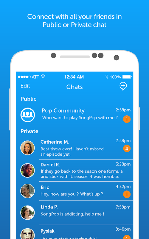 ◆ Unlimited chat with friends you've made in SongPop and MoviePop