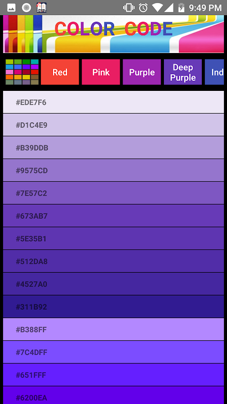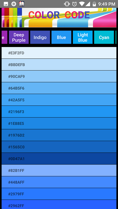 Color code app is very important for developer. There are so many color code in this app. you will get easily hex color code from this app. Hexadecimal color values are also supported in all browsers.
