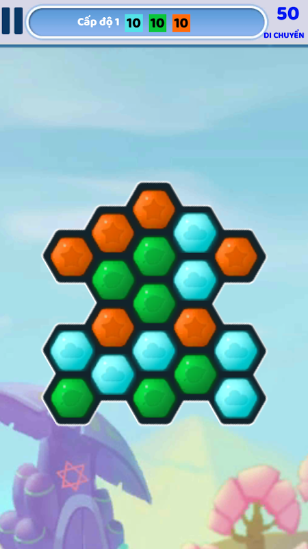 - Bấm và Thu thập các khối lục giác cùng màu – phải có ít nhất là 3