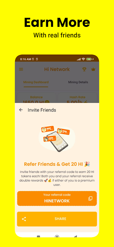Hi Network là tương lai của tiền kỹ thuật số. Với ứng dụng của chúng tôi, bạn có thể truy cập và phát triển danh mục đầu tư tiền điện tử, đặt cược, kiếm Hi Tokens và lưu trữ tài sản kỹ thuật số của mình một cách an toàn.
