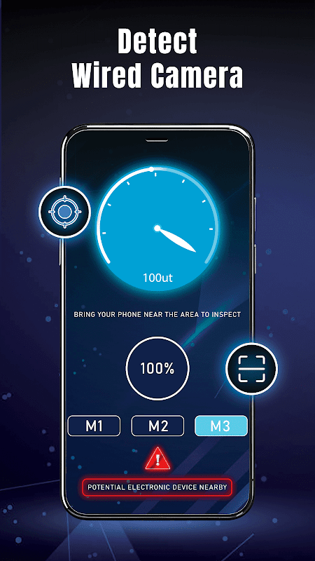 Hidden Camera Detector có thể được sử dụng như một máy quét phát hiện lỗi đa năng vì nó có khả năng cho bạn biết về từ trường xung quanh. Khi bạn ở những nơi công cộng vì công việc hoặc bất kỳ mục đích nào khác, bạn có thể sử dụng tính năng này để phát hiện các camera ẩn, chẳng hạn như khi bạn ở trong khách sạn hoặc phòng công cộng. Trình phát hiện thiết bị ẩn sẽ giúp bạn loại bỏ bất kỳ ai vi phạm quyền riêng tư của bạn.