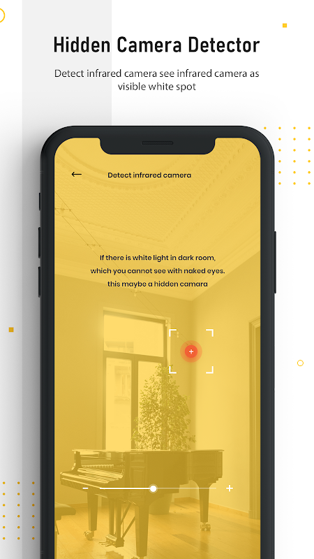 Ứng dụng phát hiện camera ẩn bảo vệ bạn khỏi camera gián điệp. Nếu bạn ở ngoài thành phố, bạn ở cùng khách sạn với gia đình, vì vậy để riêng tư, bạn cần phát hiện camera ẩn và ứng dụng dò micrô ẩn thông qua đó bạn có thể phát hiện ra camera ẩn và camera bí mật. Sử dụng điện thoại thông minh của bạn và công cụ tìm camera ẩn và ứng dụng định vị camera ẩn gián điệp và mang nó đến gần bất kỳ thiết bị nào mà bạn nghi ngờ về nó.