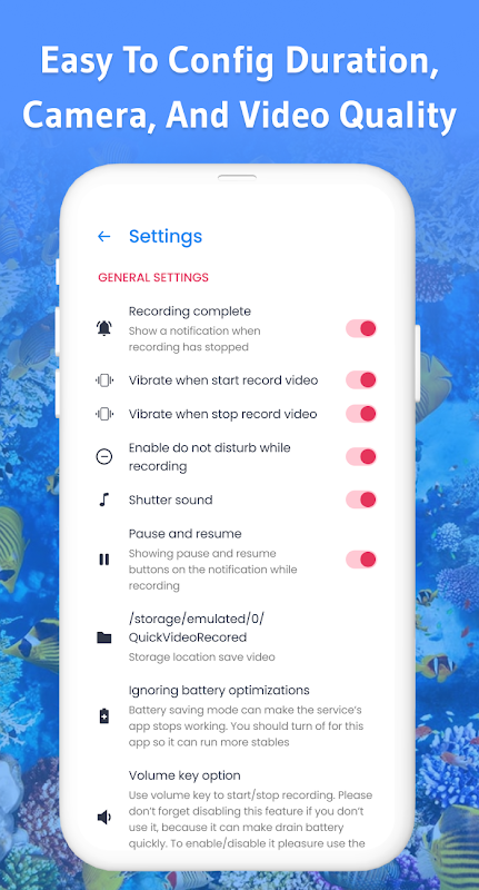 + Dễ dàng cấu hình thời lượng, camera và chất lượng video