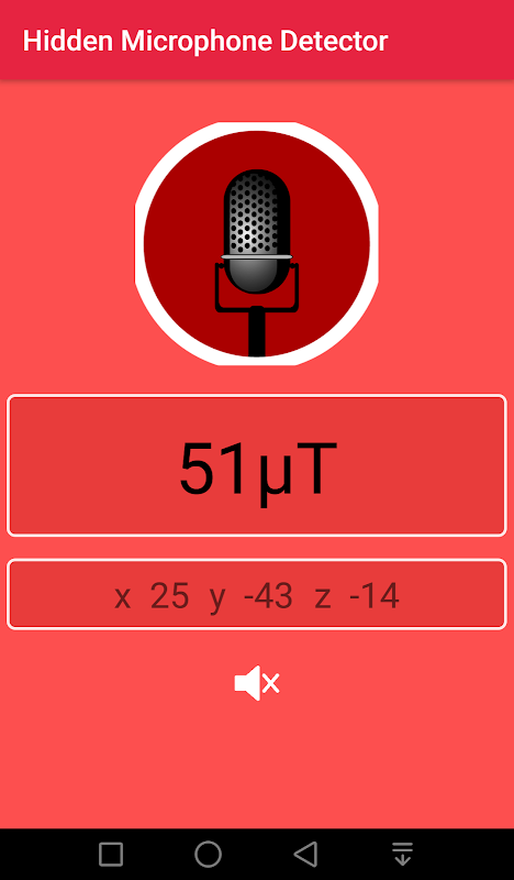 Hidden Microphone Detector application is easy to use, just open Microphone Detector app and move it around the suspected objects . If the magnetic field values arises then there should be hidden microphone or cameras in the area your surroundings. Accuracy of the app is entirely dependent on the magnetic sensor in your device and is affected by electronic devices such as TVs, remotes,batteries due to electromagnetic waves.