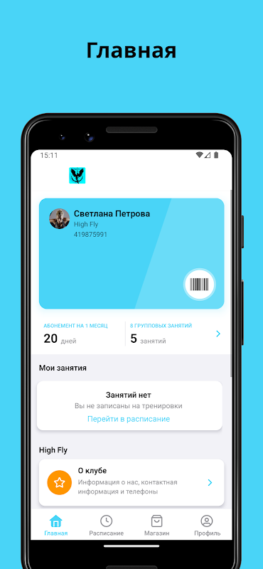Ứng dụng dành cho khách hàng của phòng tập nhảy "High Fly" để bạn thoải mái.