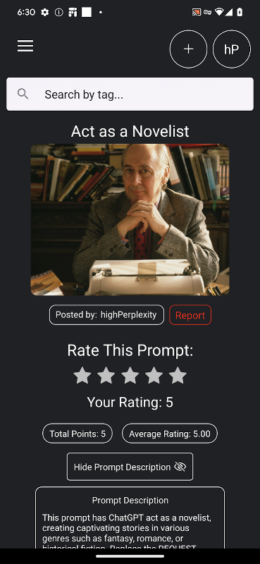 Khám phá highPerplexity - ứng dụng chia sẻ và tạo lời nhắc nhanh nhất được hỗ trợ bởi AI, được hỗ trợ bởi GPT-4 và công nghệ chuyển văn bản thành hình ảnh. Giải phóng trí tưởng tượng của bạn, tương tác với những người dùng khác và hòa mình vào thế giới khám phá sáng tạo!