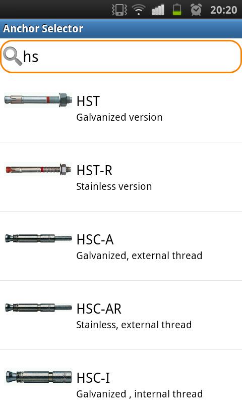 The application Hilti Anchor Selector provides the construction professionals who need information on anchors with a convenient tool and a quick access to select or search Hilti anchors.