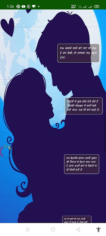 The Best hindi Shayari-हिंदी शायरी App On Android! Find the best shayari to share with your loved ones through other social networking or instant messenger apps. Express yourself with words and pictures! Very user friendly, simple but very useful. What's more,