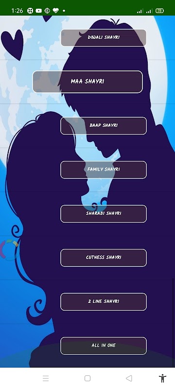 Choose shayari from over a hundred categories. New sections and new shayari are added every few days!