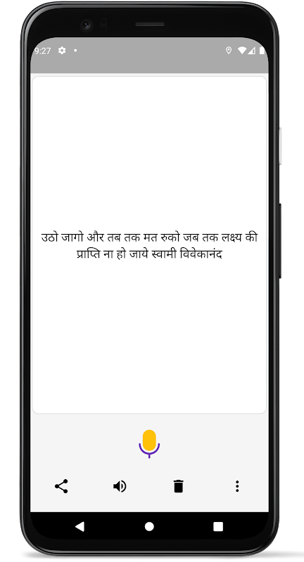* Nhấp vào nút micrô để nói bằng tiếng Hindi. Nó sẽ cung cấp cho bạn văn bản tiếng Hindi ngay lập tức.