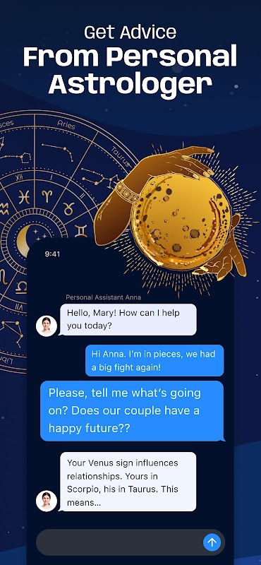 - Trò chuyện trực tiếp về chiêm tinh: Nhận bài đọc được cá nhân hóa dựa trên biểu đồ ngày sinh của bạn và trò chuyện trực tiếp với một nhà chiêm tinh chuyên nghiệp;