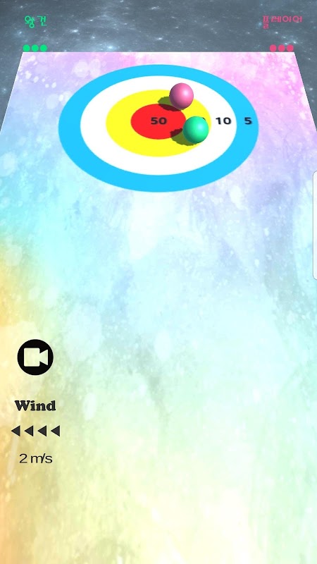 컬링의 회전 대신 바람의 방향을 고려하여 구슬을 칩니다.