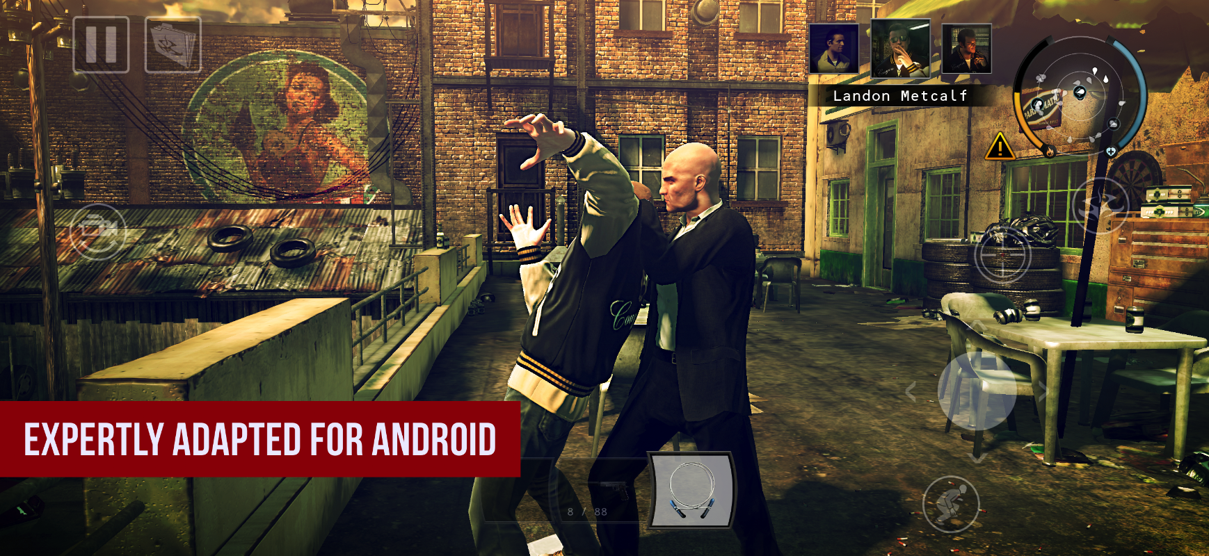 Bị gán mác là kẻ phản bội và bị truy đuổi bởi chính Cơ quan mình từng phục vụ, Đặc vụ 47 trở lại Android trong Hitman: Absolution.