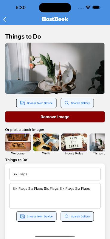 Giúp khách của bạn cảm thấy như đang ở nhà với HostBook — cách dễ nhất để tạo và chia sẻ sổ tay hướng dẫn sử dụng ngôi nhà kỹ thuật số đẹp mắt, đầy đủ thông tin và được cá nhân hóa. Cho dù bạn lưu trữ trên Airbnb, Vrbo, Booking.com hay độc lập, HostBook luôn giúp bạn mang lại trải nghiệm năm sao.