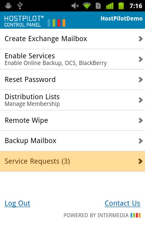 Manage Intermedia hosted Exchange accounts from your mobile device. Create mailboxes, reset passwords, wipe information from lost mobile devices, manage distribution lists and access other popular features.