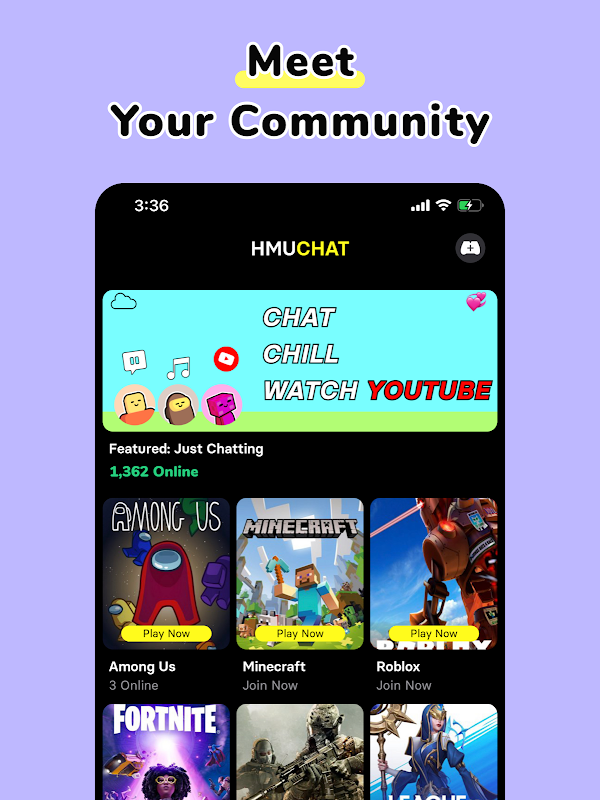 - Say hello to audio chat match making rooms! Looking for people to play with? Look no longer with HMUChat! Join rooms based on games and play with other gamers instantly!
