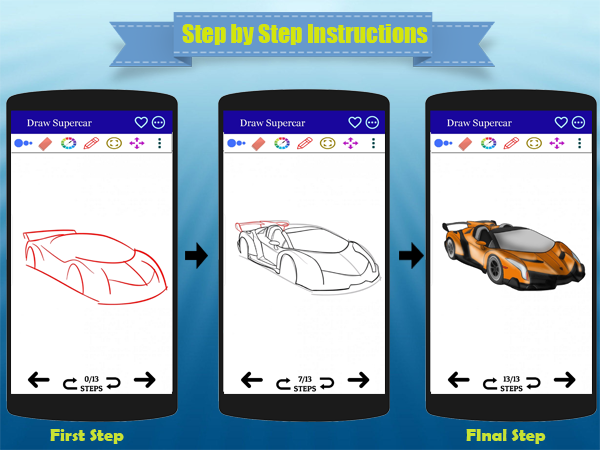 Bạn đang chờ đợi điều gì? Tải xuống và cài đặt ứng dụng nghệ thuật vẽ nghệ thuật này để tìm hiểu cách phác họa một chiếc xe thể thao từng bước. Sau khi tải xuống hướng dẫn vẽ miễn phí này, bạn sẽ có thể vẽ chiếc xe thể thao yêu thích của mình một cách dễ dàng.