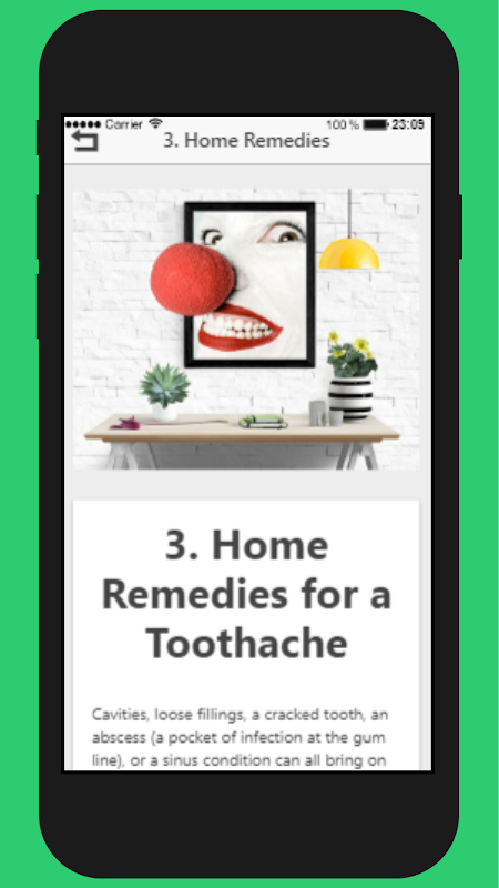 In this app I will be sharing some tips on how to stop a toothache using simple methods that are very quick and easy to implement, here are some of the methods you can use: