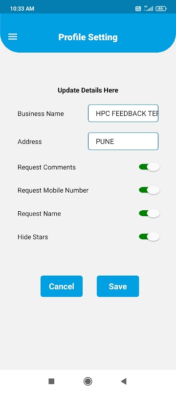 Ứng dụng này cung cấp cơ sở để đưa ra đánh giá và phản hồi tại các cửa hàng ngoại tuyến. Ứng dụng này hoạt động trực tuyến trên internet. Hỗ trợ ứng dụng cho các màn hình khác nhau như màn hình di động, màn hình tab 9 inch và 10 inch, màn hình hiển thị lớn 15 inch, v.v. Nó có tùy chọn nhập câu hỏi khác nhau, bật/tắt tùy chọn nhập phản hồi và bỏ qua chức năng câu hỏi. Ứng dụng này có thể được tùy chỉnh cho bất kỳ doanh nghiệp nào dựa trên ứng dụng của họ từ cài đặt.