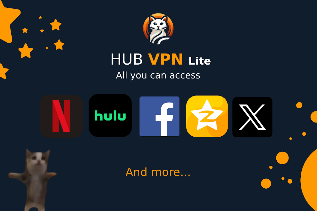 Giới thiệu Hub VPN Lite - Tất cả những gì bạn có thể kết nối! Không phải ứng dụng VPN thông thường của bạn đâu, thưa các bạn. Chúng tôi không bắt chước; chúng tôi là một nhóm gồm những người chuyên cho mèo ăn đã trở thành phù thủy công nghệ!