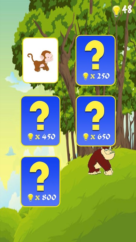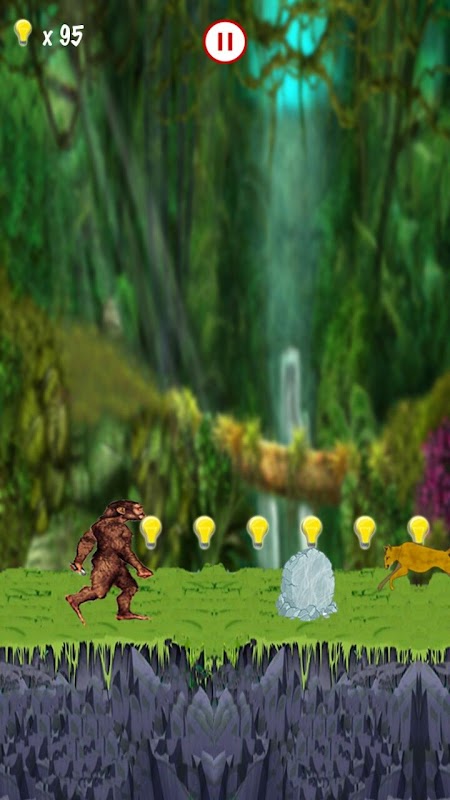 At phase running you have to control the monkey running and avoid rocks on the road by tap the screen to jump combined with gather intelligence. When there is enough intelligence you can unlock other characters more colorful.