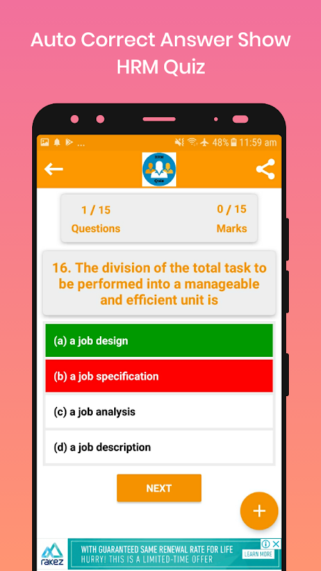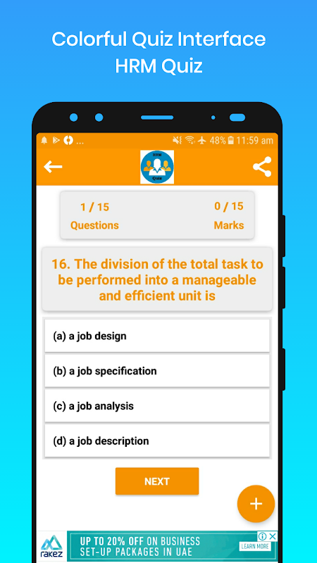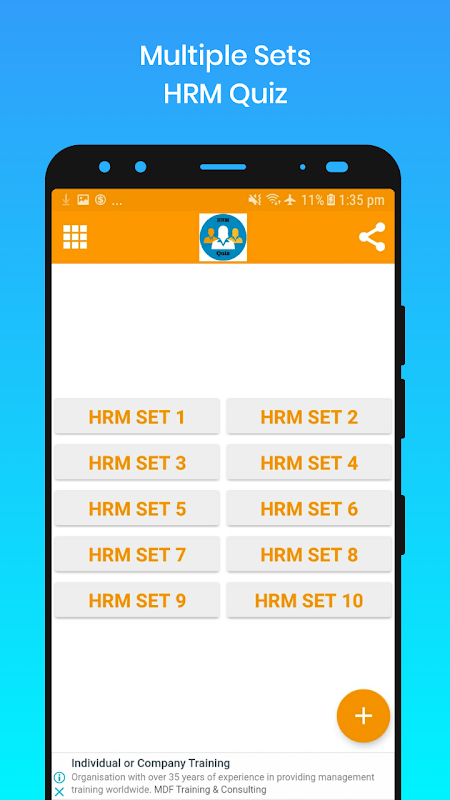This application has been developed for testing your HRM skills. This is a latest and fantastic new education application which has been fueled with lots and lots of interesting questions that test your intelligence in the subject. It has more than 100 multiple choice questions and answers and these cover a wide range of varieties of topics. General knowledge starting from basic to high level Human Resources can be found in this app.