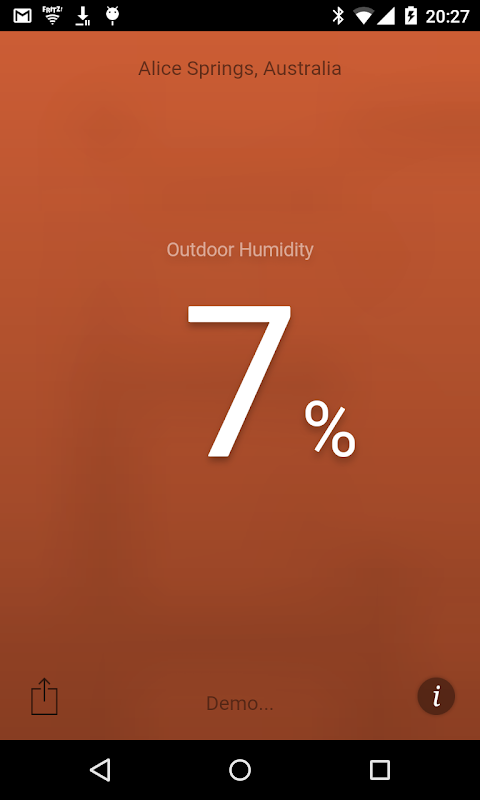 Ứng dụng này cho thấy độ ẩm ngoài trời tương đối hiện nay, được đo bởi một trạm thời tiết gần đó cho mà nó sử dụng vị trí hiện tại của bạn.