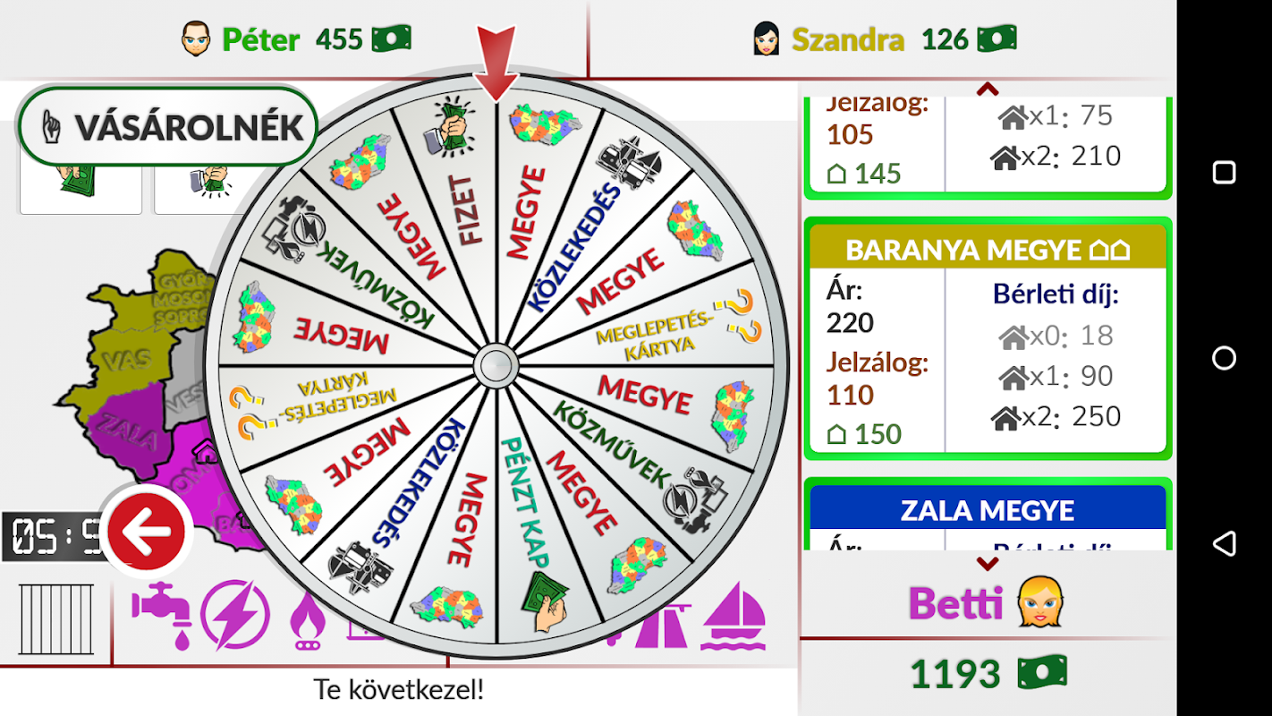 Klasszikus társasjáték. Vásárolj, építkezz, és szedd be a pénzt ellenfeleidtől!