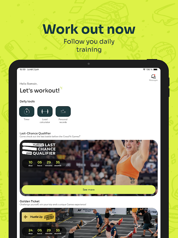 Hustle Up hợp tác với các hạng mục bán kết CrossFit và Trò chơi dành cho Bậc thầy, Thanh thiếu niên và Thích ứng: tham gia vào các sự kiện và đặt các hoạt động thông qua ứng dụng của chúng tôi.