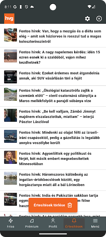 Một HVG személyre szabható hírolvasó alkalmazása.