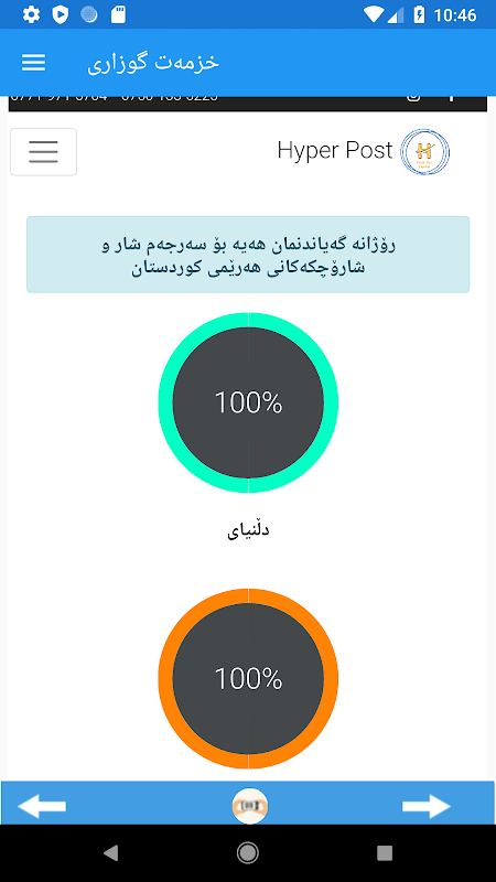 کۆمپانیای هایپەر پۆست کۆمپانیایەکی پۆستی ناوخۆی یە لە ٢٥/١٠/٢٠١٧ لە شاری سلێمانی دامازراوە لە لایەن ئازار محەمەد ئەحمەد -ئۆفیسی سەرەکی لە شاری سلێمانیە .ئامانجی سەرەکی کۆمپانیای هایپەر پۆست رێکخستنی کاروباری پۆستەیە لە ناوخۆی عێڕاق بە تایبات لە هەرێمی کوردوستان بە شێوەیەکی سەردەمیانە .هەروەها برەودان بە کاری کڕین و فرۆشتنی ئۆنلاین لە ڕێگەی ئاسانکاری بۆیان لە گەیاندنی کاڵاکانیان بە شێوەیەکی خێرا و سەردەمیانە وە رەخساندنی چەندین هەلی کار. ئۆفیسەکانمان: ئۆفیسی سلێمانی –ئازار محەمەد احمد ٠٧٧٠٤٨٨١٩٢٠ ٠٧٥٠١٣٣٥٦٦٥ ئۆفیسی هەولێر فەرعی حەدید و خەشب نزیک مزگەوتی جەلیل خەیات- سەرهەنگ قادر ٠٧٥١٤٠٣٤٧٣٦ ٠٧٥١٤٠٣٤٧٣٨ بەم زووانە ئۆفیسی دهۆک و کەرکوک دەکرێتەوە.