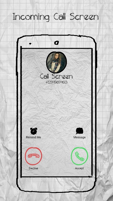 This call screen is best sketch theme full screen caller id for incoming and outgoing call. We are giving you bes paper background to make sketch callscreen batter design.