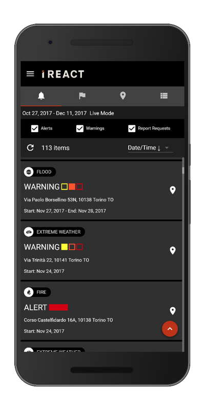 Or maybe you have seen in the news that heavy rain is coming. With this app, you can check if you are at risk of suffering a flood, and be prepared! You can also validate other users’ reports, to keep the information as relevant and updated as possible.