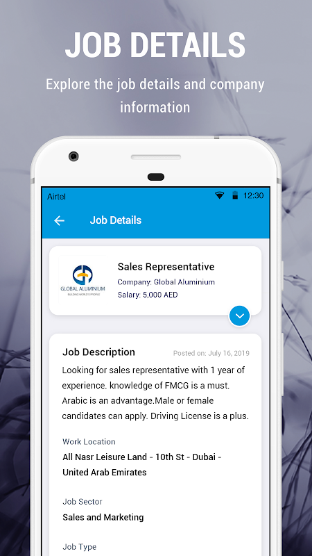 Ứng dụng tìm kiếm việc làm dựa trên vị trí này thực sự là ứng dụng tìm kiếm việc làm phát triển nhanh nhất trong khu vực vùng Vịnh. Đó là một cách nhanh chóng và dễ dàng để tìm việc làm. Cho dù đang tìm kiếm những công việc mới hơn hay những công việc dành cho các chuyên gia có kinh nghiệm, vẫn có những cơ hội việc làm trong lĩnh vực bán hàng, tiếp thị, kế toán, CNTT, nhân sự, xây dựng, bất động sản, hậu cần và kho bãi, giảng dạy, điều dưỡng, khách sạn và nhà hàng và hơn thế nữa.