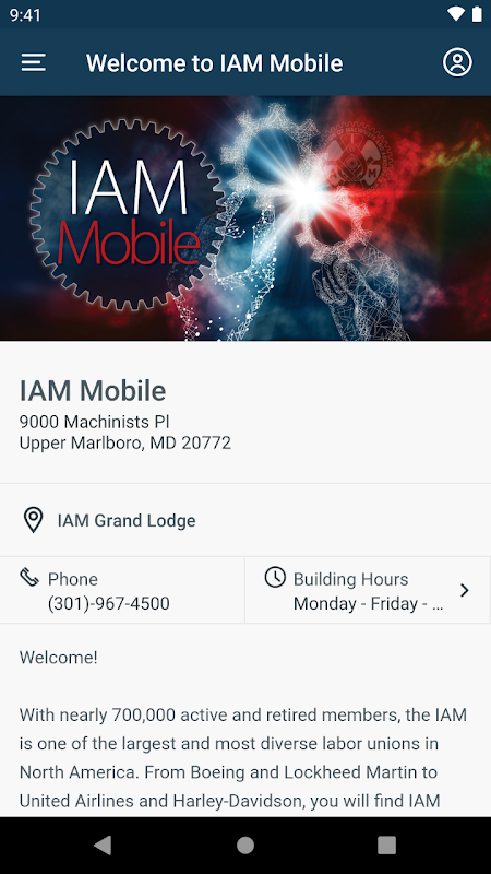 IAM Mobile kết hợp tất cả các chức năng trực tuyến phổ biến của IAM như IAM Journal, Mạng Tin tức Machinists trên dịch vụ video theo yêu cầu, trang web IAM GOiam.org, iMail, Thư viện ảnh IAM, Trang Facebook IAM và nhiều thứ khác dễ dàng hơn -truy cập ứng dụng cho máy tính bảng và điện thoại thông minh.