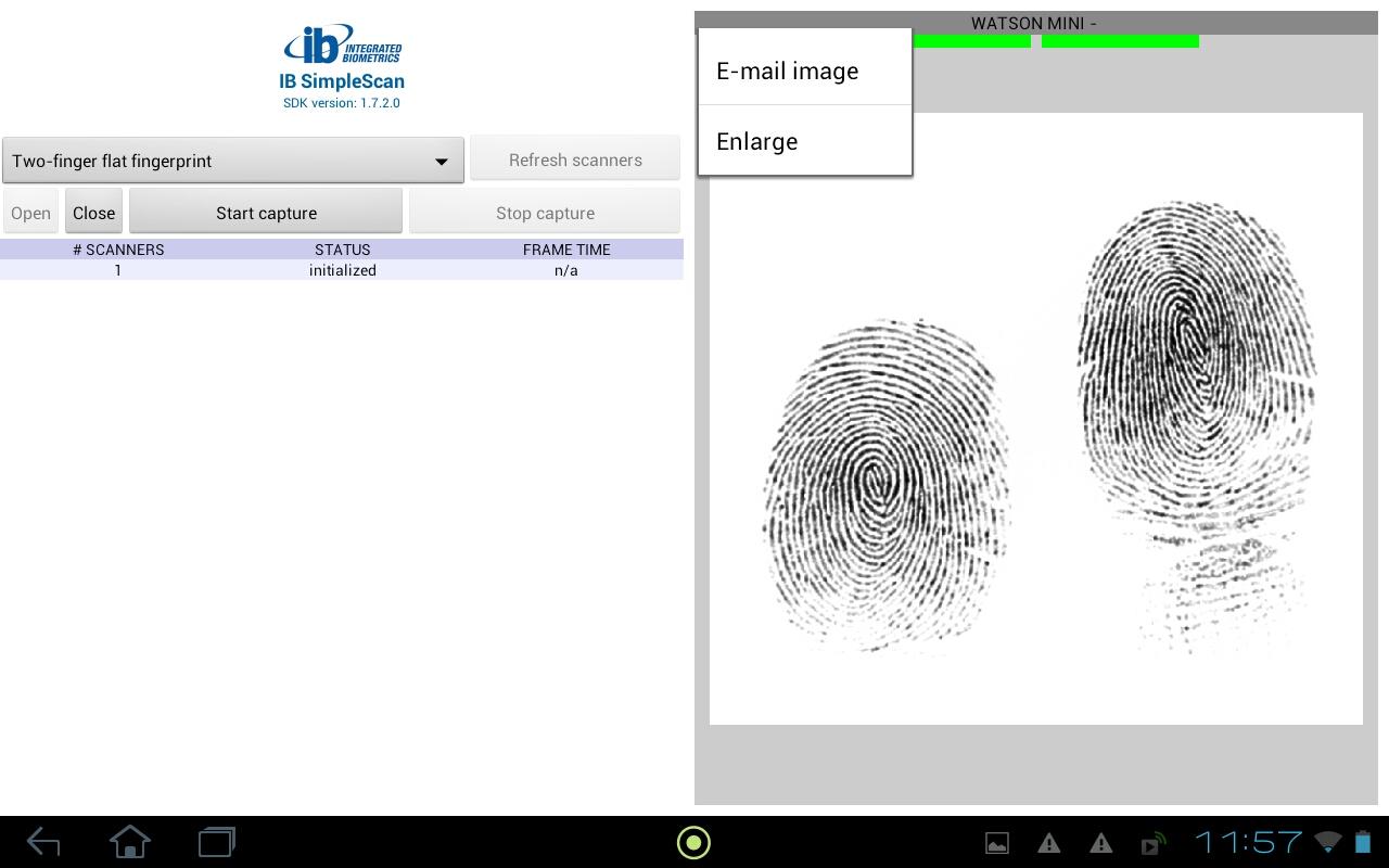 Tích hợp Sinh trắc học cung cấp cho SimpleScan trình diễn dễ dàng của máy quét dấu vân tay của nó. Kết nối Watson, Watson Mini, Sherlock, Columbo, Kojak, hoặc đường cong cho điện thoại hoặc máy tính bảng để đánh giá Android của bạn!