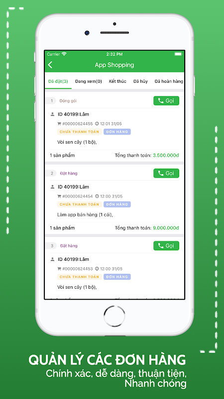 - Xử lý nhanh chóng đơn hàng mọi lúc mọi nơi