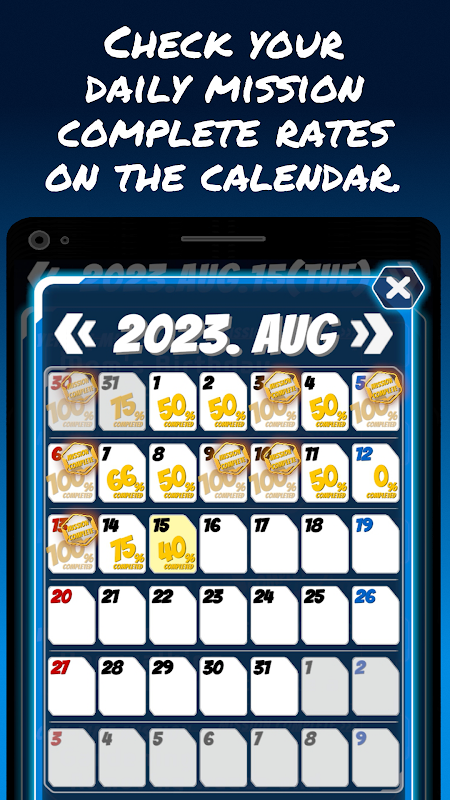 - Find your daily mission completion rate on a calendar