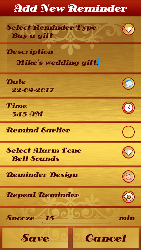 ►Một ngày mới nhất Nhắc Nhở ► sẽ báo cho bạn biết khi hẹn gặp nha sĩ hoặc khi bạn cần dùng thuốc, vì vậy đừng bao giờ quên một điều quan trọng từ danh sách "cần làm" của bạn. Cuộc sống hàng ngày của chúng tôi đã trở nên quá bận rộn đến nỗi đôi khi chúng tôi có rất nhiều nghĩa vụ, và thường xảy ra rằng chúng ta quên hoàn thành những gì chúng tôi đã lên kế hoạch. Có thể hoàn thành tất cả những gì bạn đã lên kế hoạch. Chỉ cần tải về ứng dụng ► Miễn phí quan trọng ngày tháng Reminder◄ miễn phí và bạn sẽ có một công cụ hữu ích trên điện thoại thông minh hoặc máy tính bảng của mình để giúp bạn tổ chức các hoạt động hàng ngày của mình. Nhà hoạch định sự kiện này có rất nhiều lựa chọn để làm cho cuộc sống của bạn dễ dàng hơn. Sau khi bạn chọn kiểu nhắc nhở từ danh sách lời nhắc, bạn nên đặt thời gian và ngày cho công việc mà bạn phải hoàn thành. Trong mô tả ngắn, bạn có thể nêu thêm thông tin về cuộc gọi điện thoại mà bạn cần phải thực hiện hoặc ngày kỷ niệm mà bạn nên mua một món quà. Sự Nhắc nhở Quan trọng này ►Ngày mát mẻ có thể nhìn đẹp hơn sau khi bạn tùy chỉnh giao diện và làm cho nó phù hợp với sở thích của bạn.