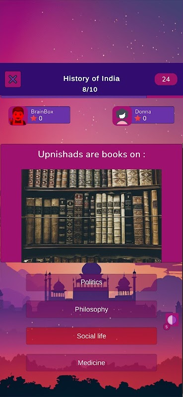 Hãy bắt đầu một hành trình thú vị qua bức tranh thảm sống động của Ấn Độ với Indian Knowledge Quiz, trò chơi đố vui nhiều người chơi đỉnh cao! Thách thức bạn bè hoặc cạnh tranh với những người chơi từ khắp nơi trên thế giới trong một bài kiểm tra kiến thức thú vị về Ấn Độ.