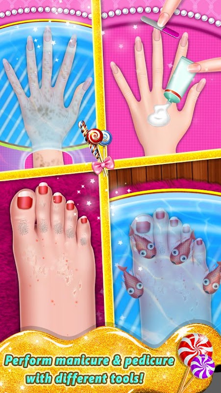 Chúng tôi có rất nhiều thứ mới dành cho bạn! Bạn sẽ bắt gặp nhiều phụ kiện khác nhau với quần áo, kiểu tóc, mỹ phẩm, đồ trang sức và trang điểm. Bạn có đủ tò mò không? Hãy đến kiểm tra ứng dụng tiệm làm đẹp và thiết kế các kiểu kẹo bằng trí tưởng tượng của bạn. Ghi lại tất cả những khoảnh khắc vui vẻ trong tưởng tượng kẹo của bạn và lưu chúng trong bộ sưu tập của bạn. Ghé thăm tiệm làm đẹp dành cho tuổi teen để được thay đổi kiểu tóc, chăm sóc sắc đẹp, tiệm làm móng nghệ thuật kẹo, làm móng tay, móng chân, sơn móng tay và nhiều hơn nữa! Trong trò chơi này, chúng tôi cung cấp nhiều loại váy đẹp mắt để mặc trong xứ sở thần tiên, trang điểm kẹo sô cô la, hóa trang, mặc quần áo búp bê và nhiều hơn nữa!